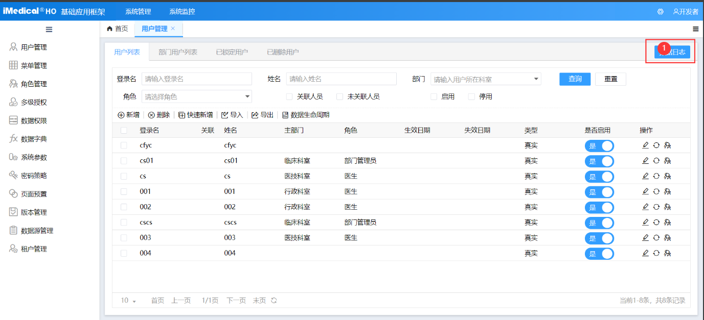 数据日志主要记录用户信息所有的操作过程,包含新增、编辑、删除、重置密码、解锁、导入等等对数据做了变更的操作,查询除外。