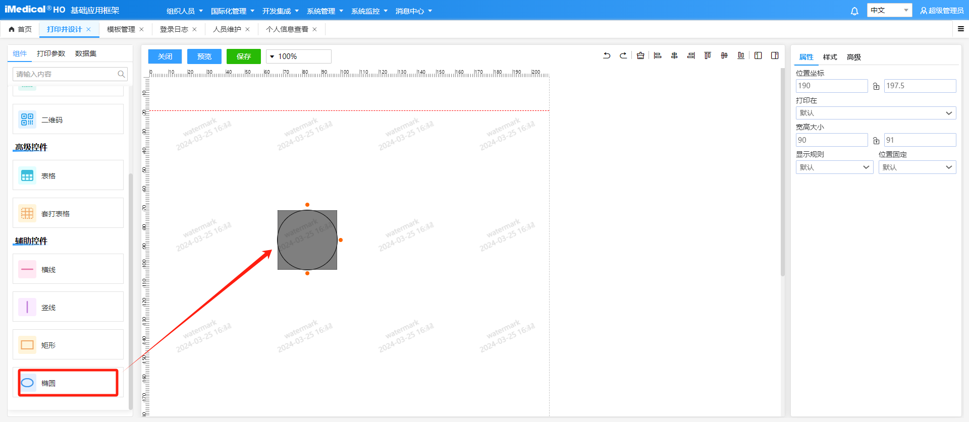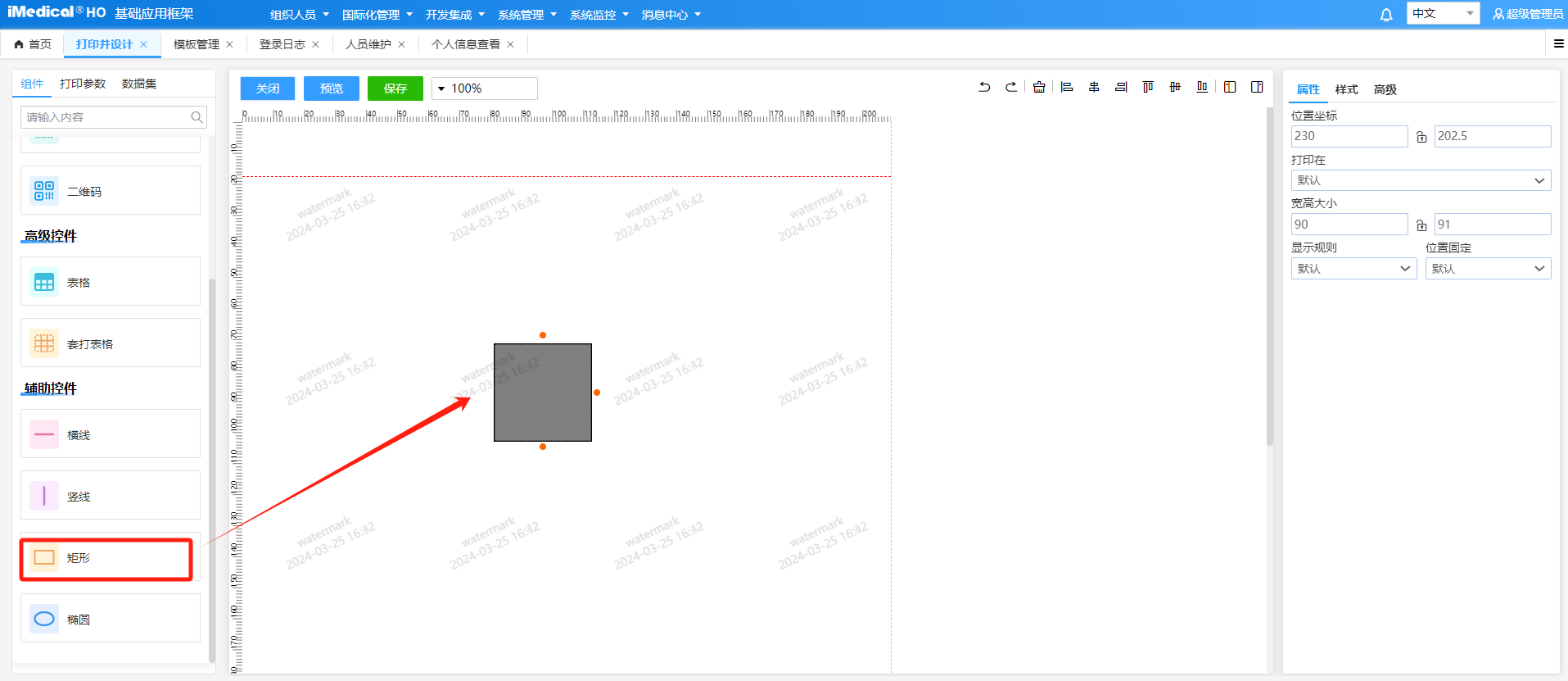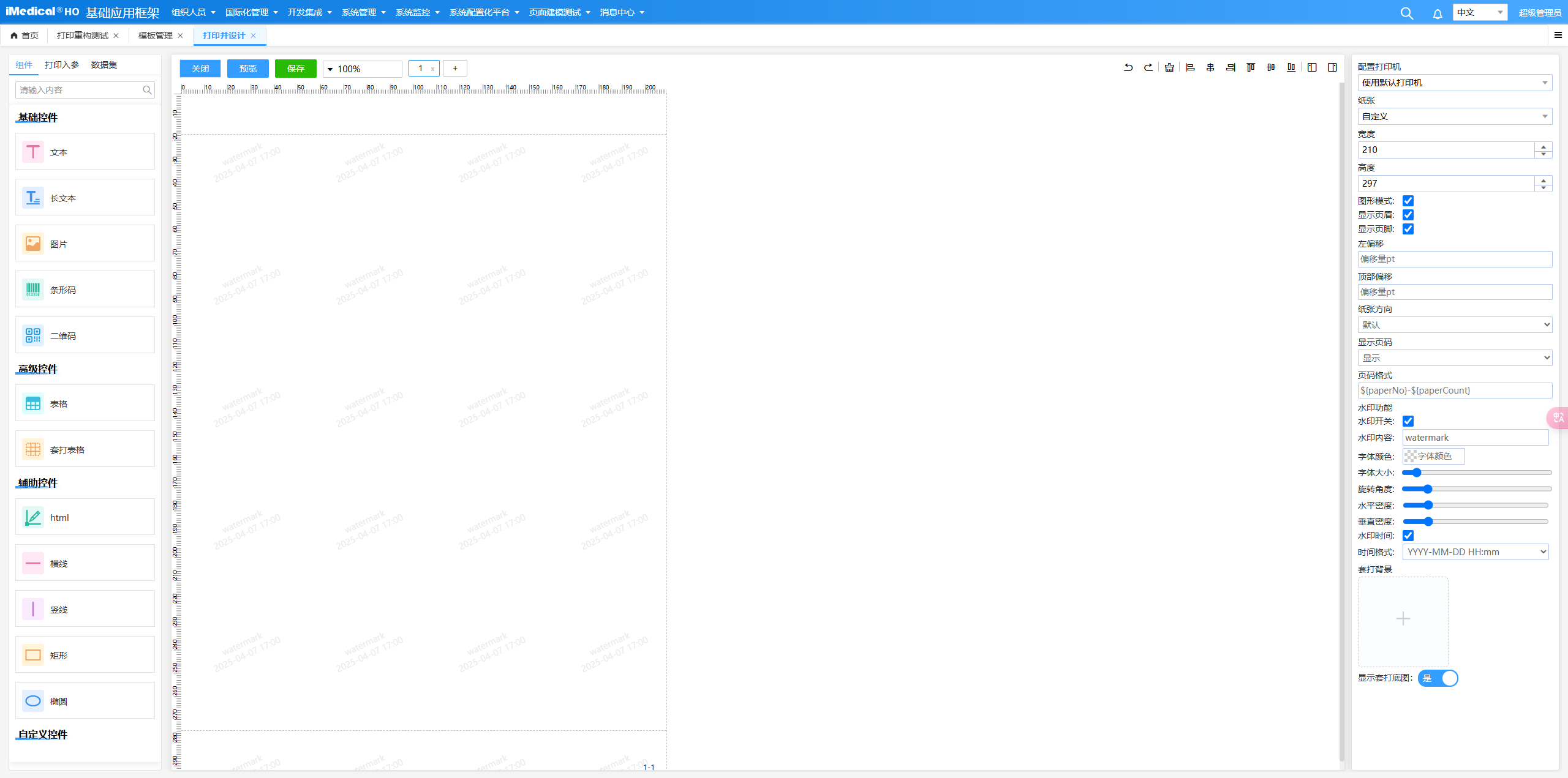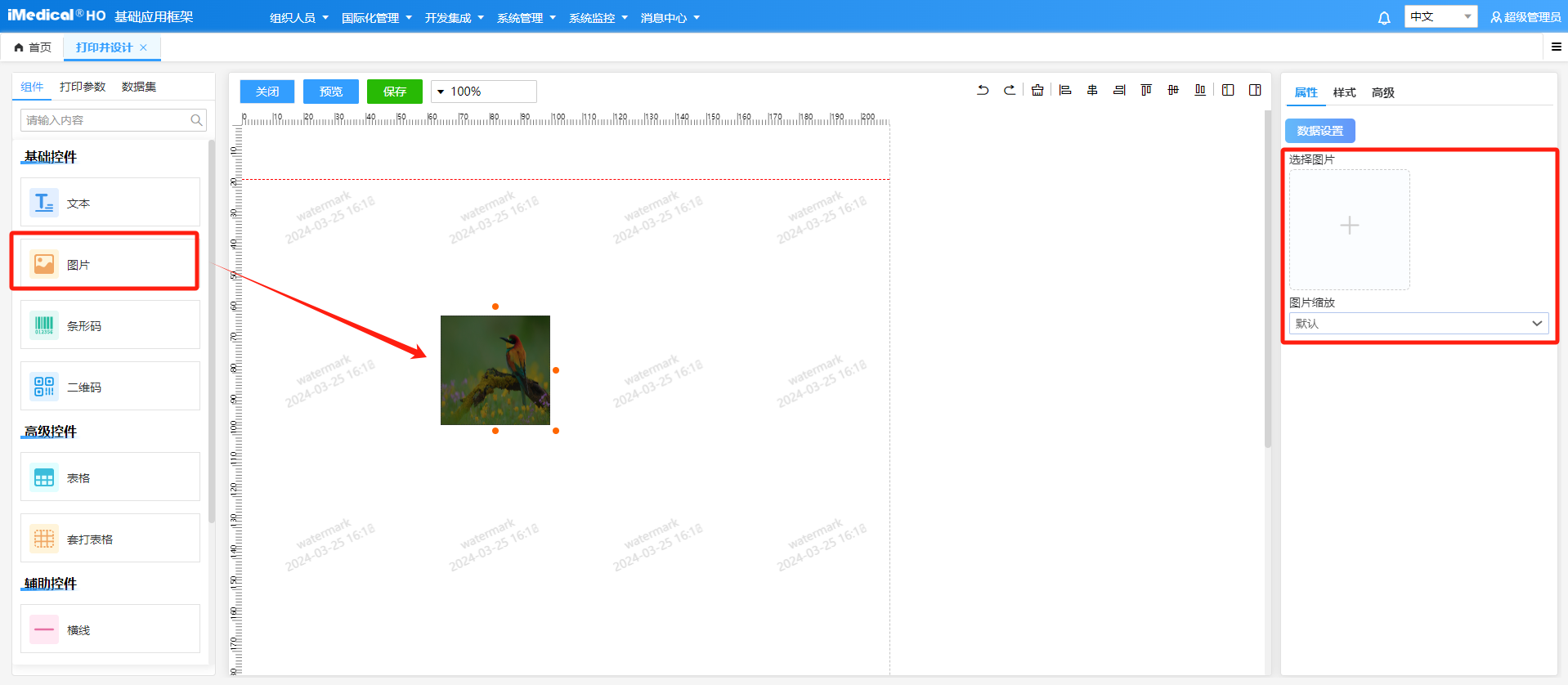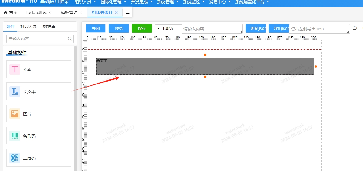 Lodop打印设计器支持文本、图片、条形码、二维码、表格、套打表格、辅助功能等组件。只需要将组件拖动至画布中,选择组件的数据设置、样式设置等配置 即可完成Lodop打印模板的设计。