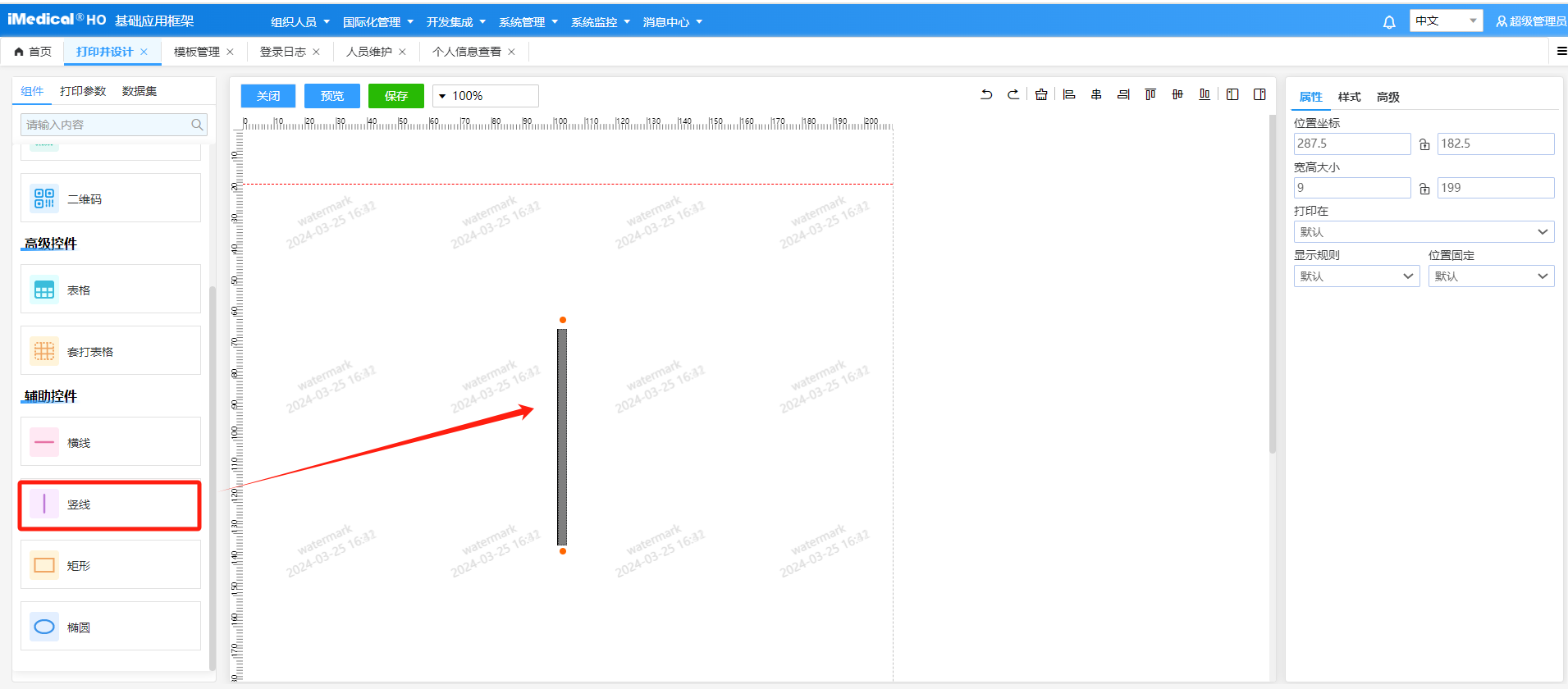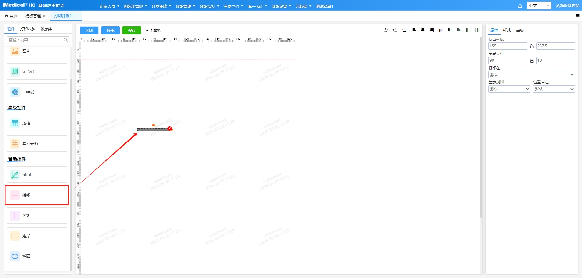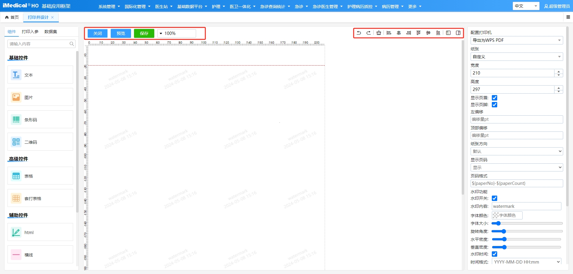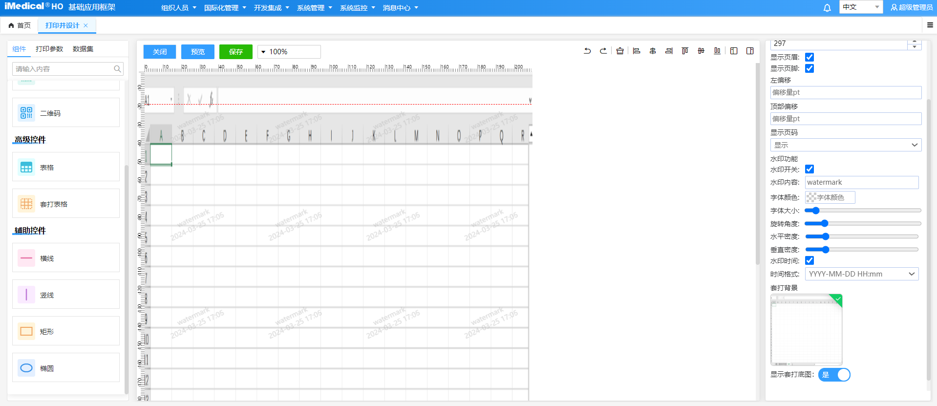 组件元素设计在页眉页脚上,则代表该组件会在每页的页眉页脚上打印。