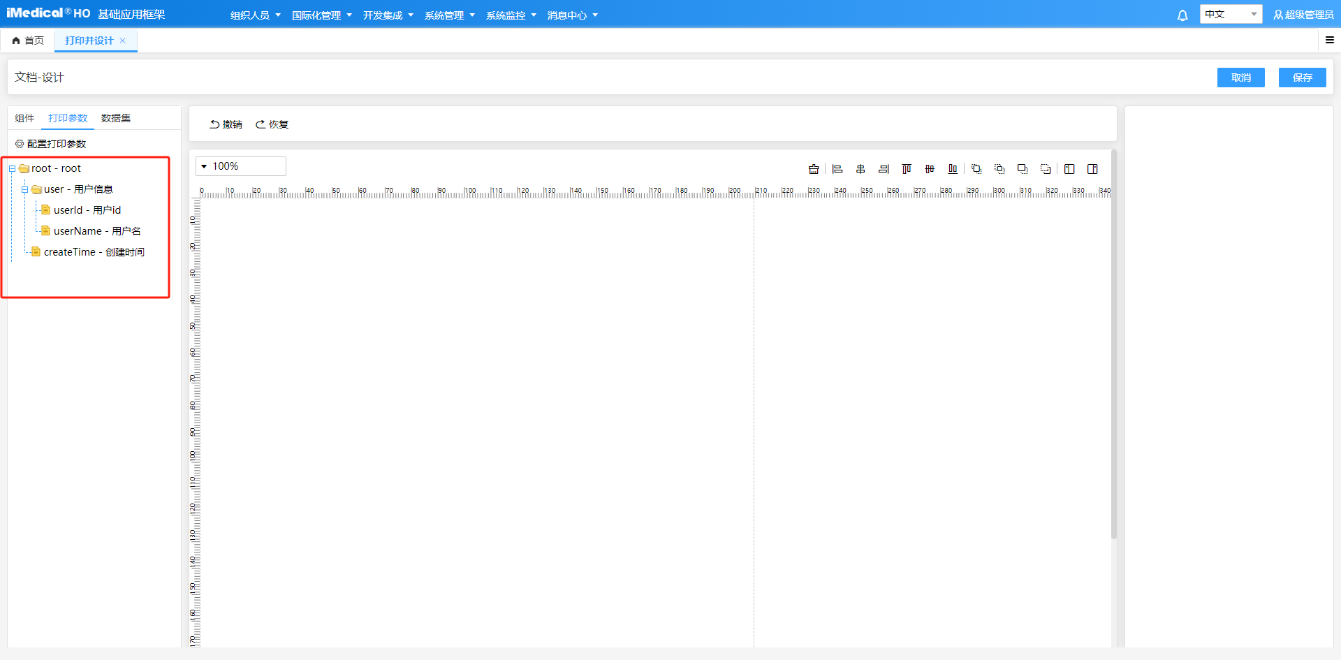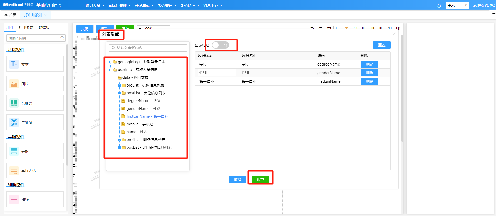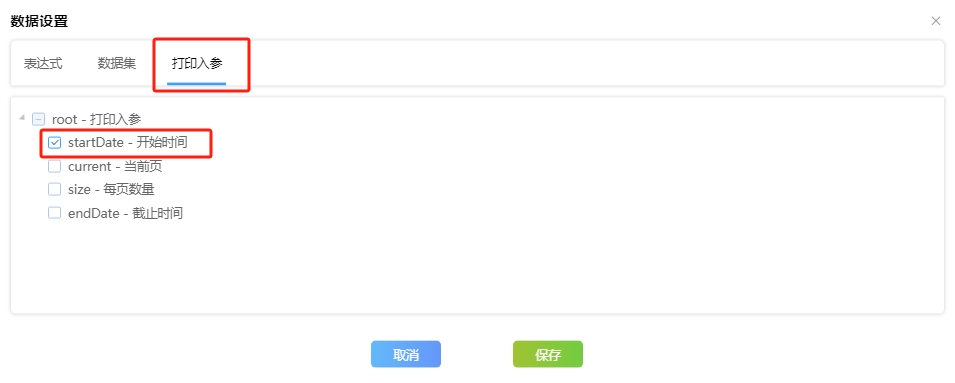 点击【打印入参】-【配置打印入参】即可配置打印参数。