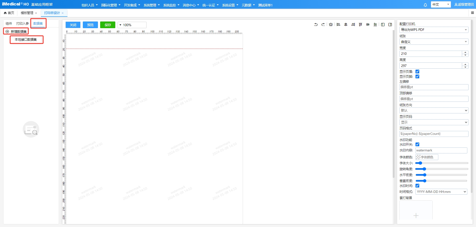 本地接口数据集是指在打印获取时调用系统本地接口获取数据的方式。在使用本地接口数据集是需要在yml文件中配置server-url及上下文根路径context-path。