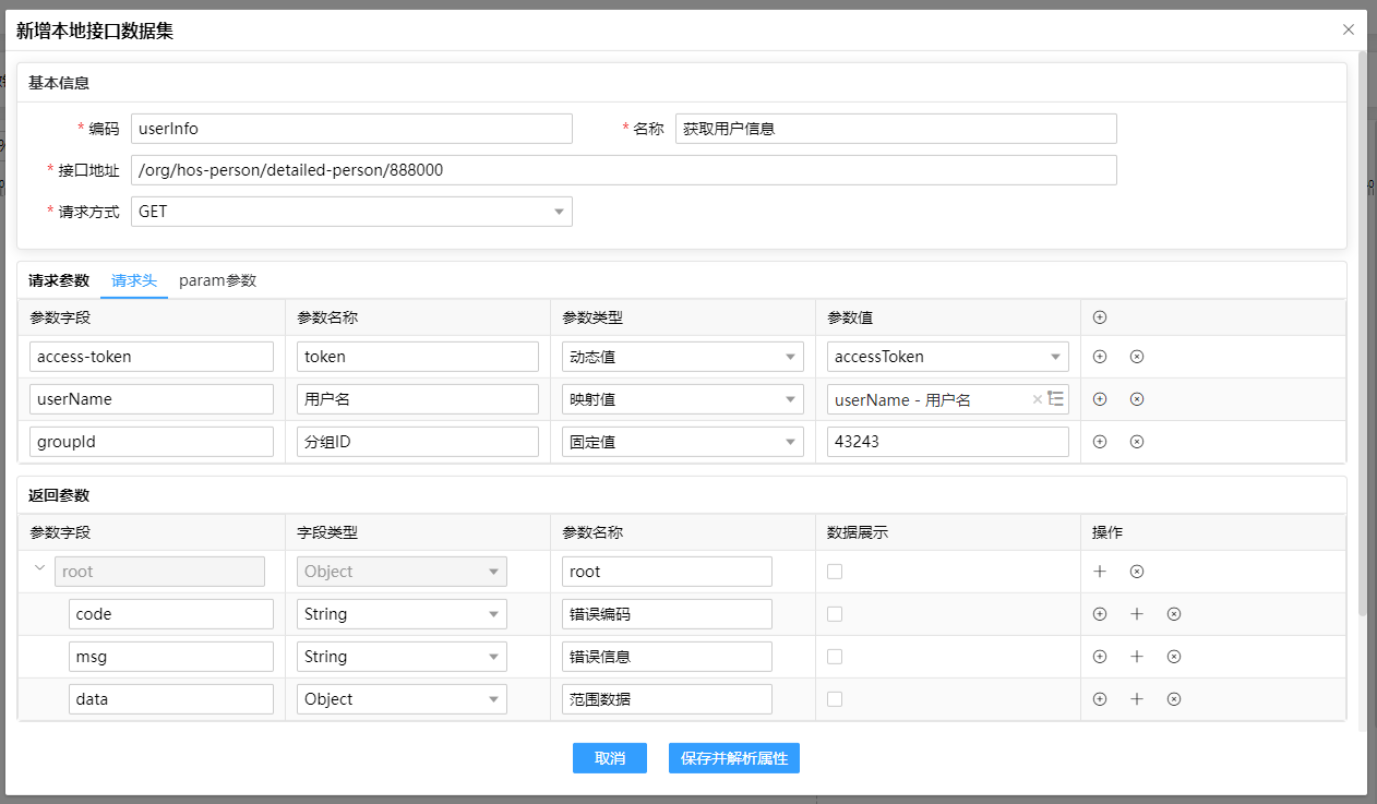 - 如果接口需要登录认证时,需要在请求头中添加参数字段为access-token,参数类型为动态值,参数值为accessToken的配置。