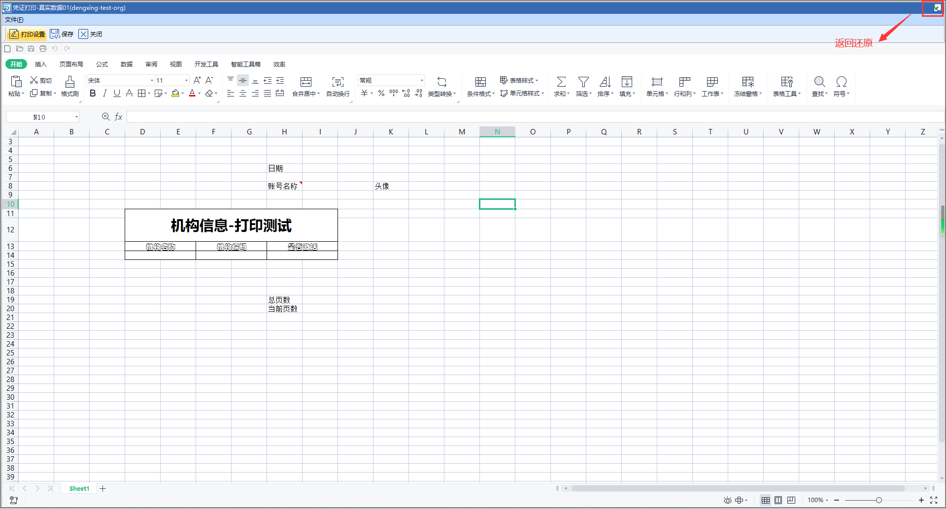 点击模板右上角图标,excel 模板将最大化,方便用户进行模板设计。