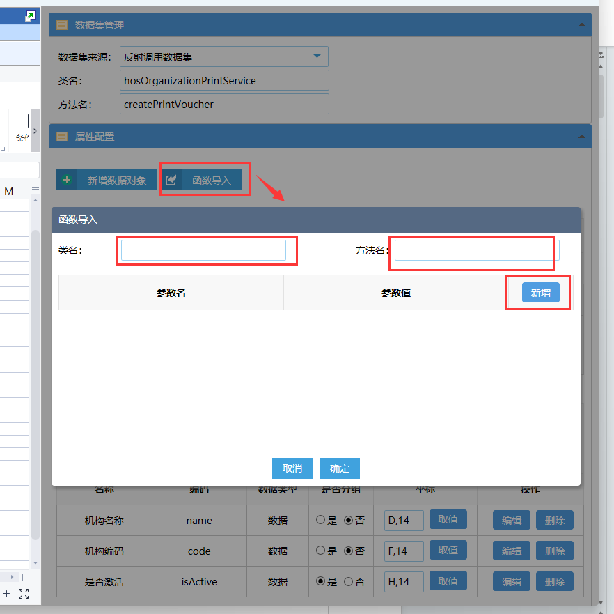 数据集管理用于配置打印时的数据来源,目前只支持反射调用数据集这一种方式。