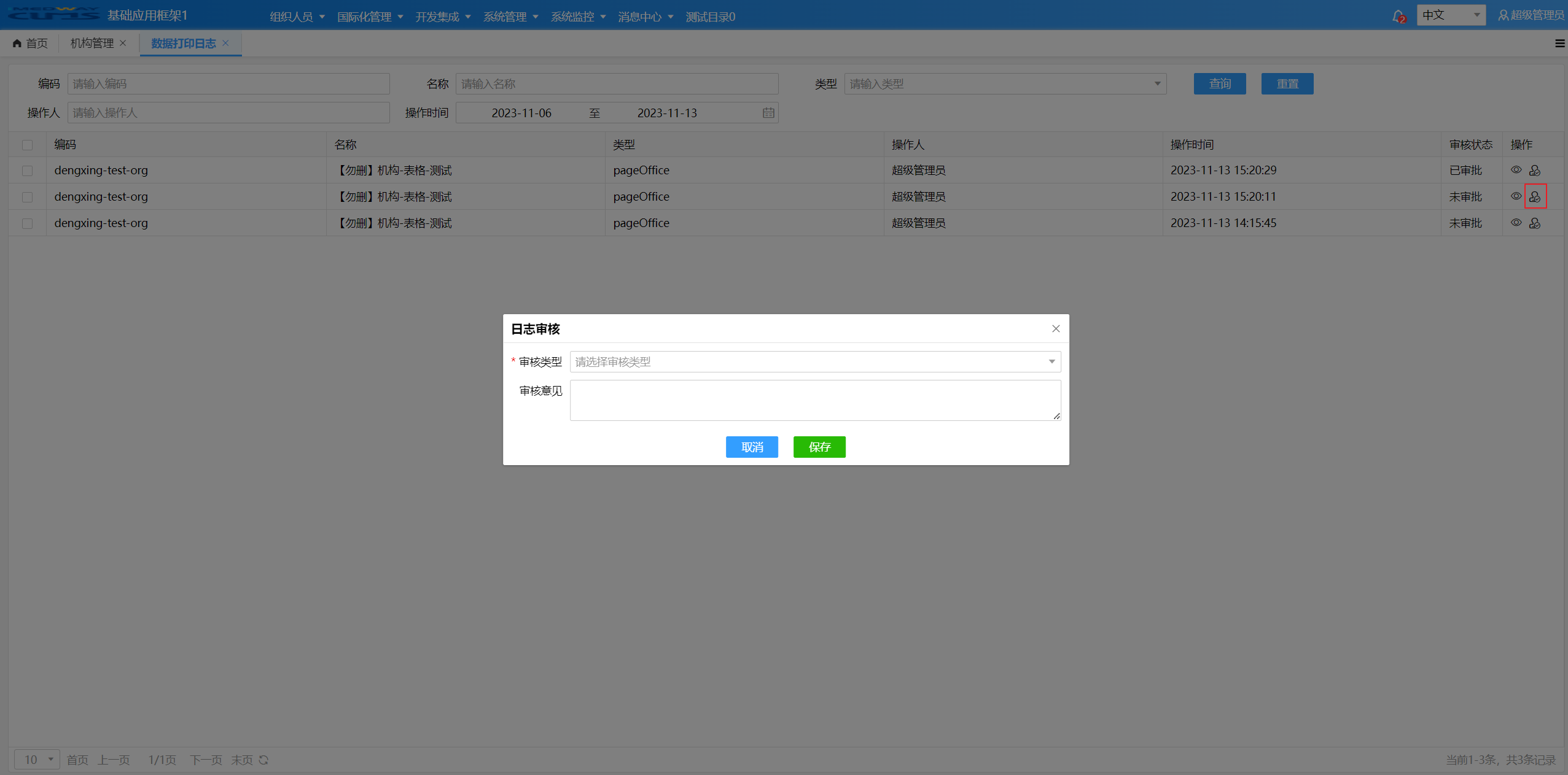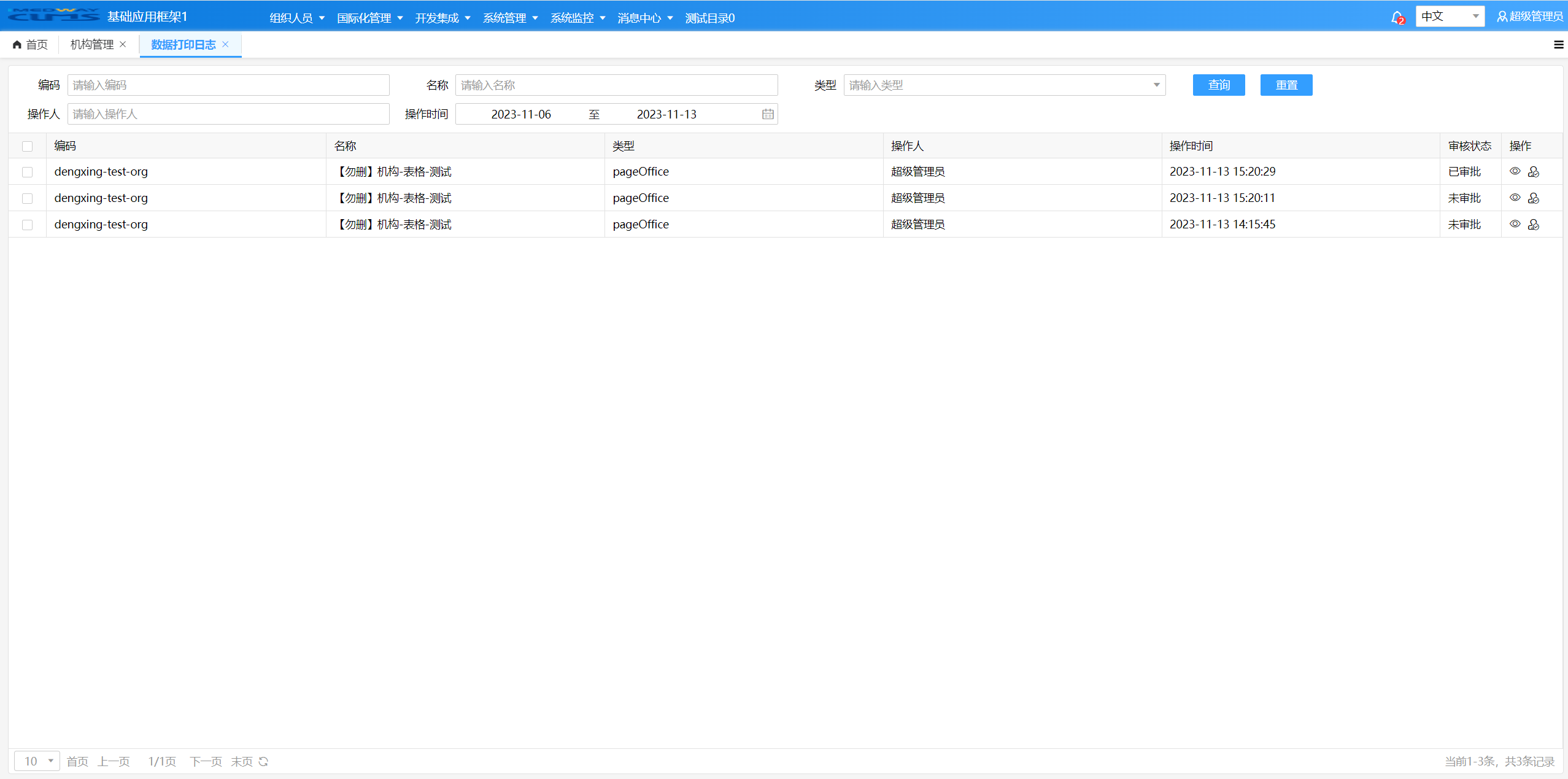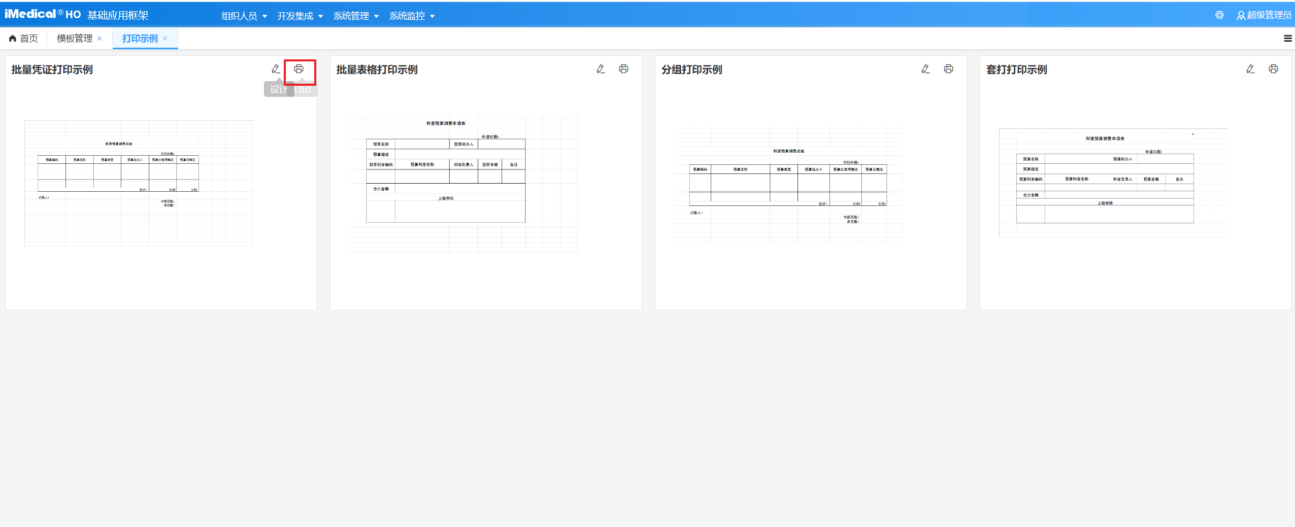 【模板管理路径:】开发集成 -> 打印设计器 -> 模板管理