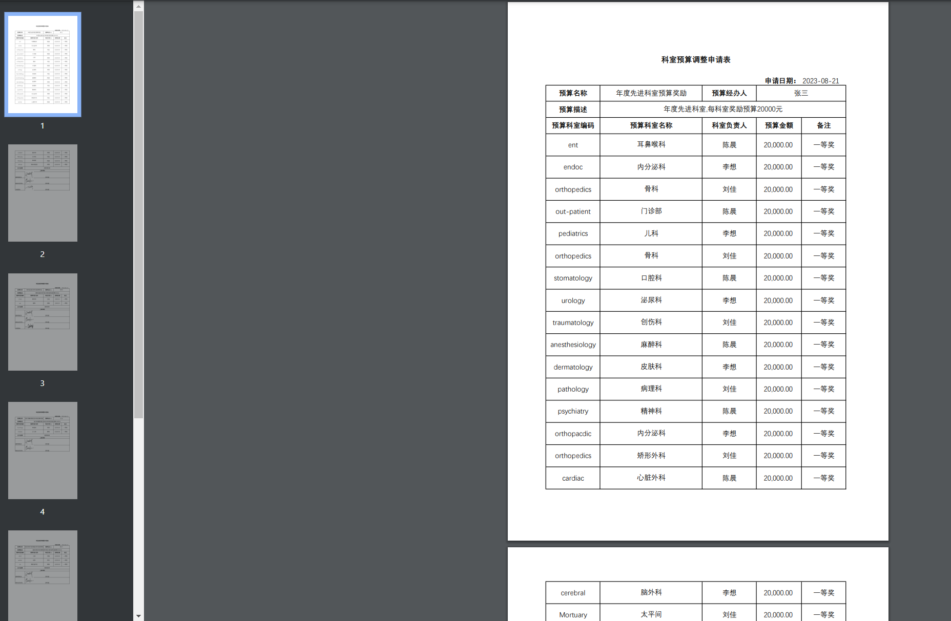 "remark": "年度先进科室,每科室奖励预算20000元",
