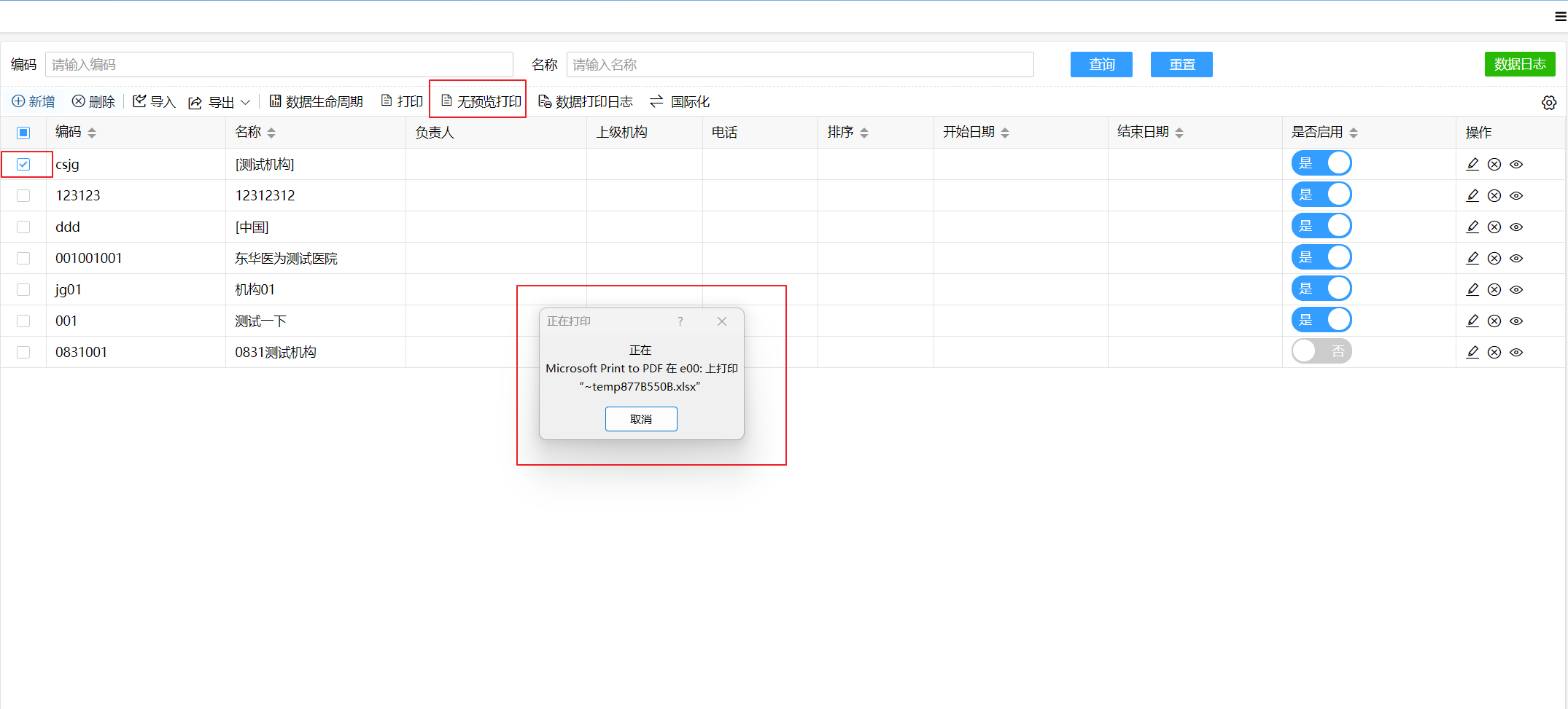 "id": "1d657c4ff4ee60c00f48228376f6627c" //数据主键,需要记录打印日志时必传