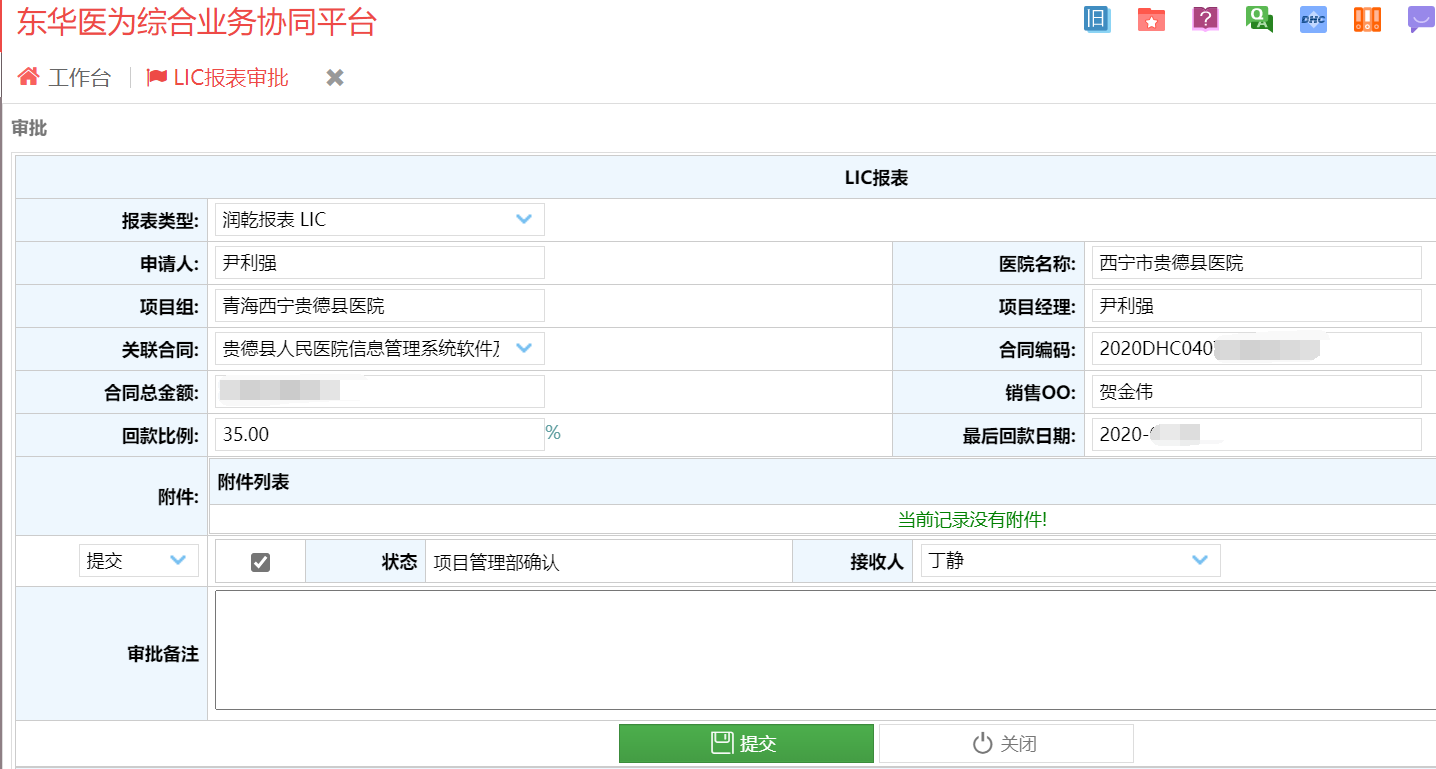 4、查看历史记录:进入【合同管理】-【LIC报表审批】界面,可以查看历史申请记录。