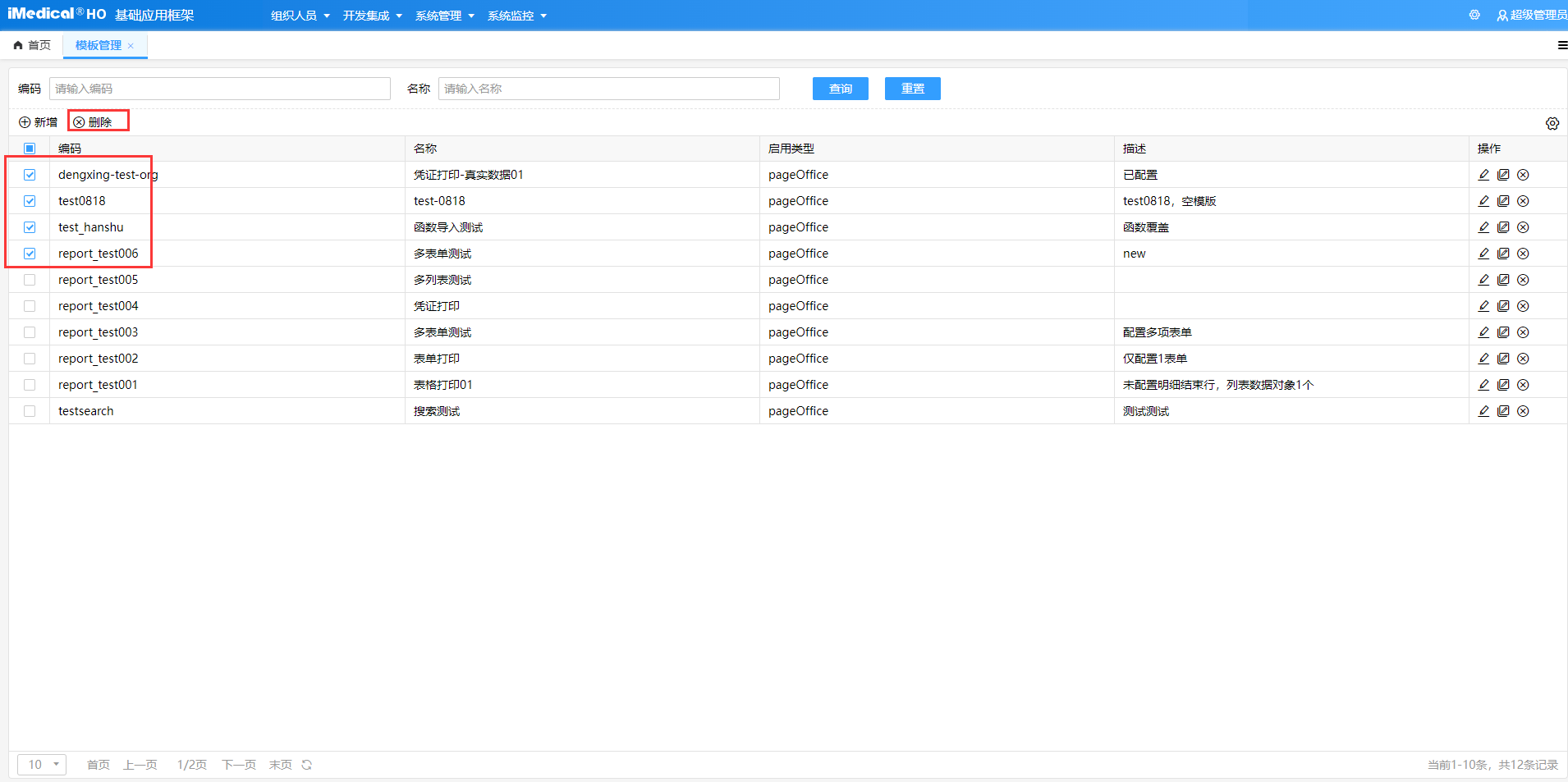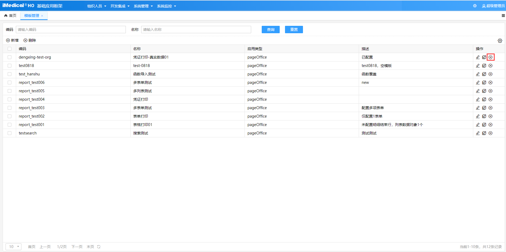 【模板管理路径:】开发集成 -> 打印管理 -> 模板管理